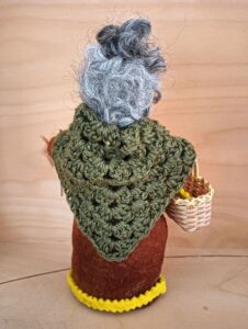 Haar omslagdoek houdt haar heerlijk warm en haakte ik van rami en wol.Haar prachtige lokken zijn van prachtige Gotland schaapjes mooi he.